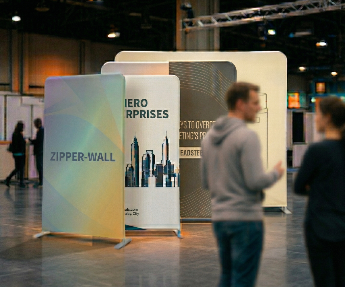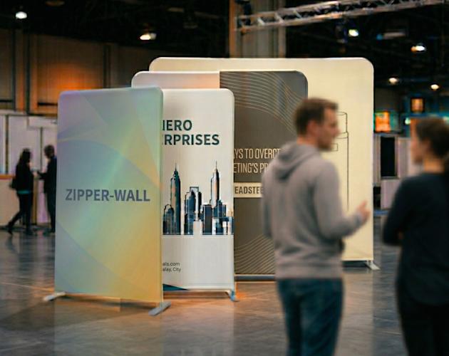 Lichtgewicht hangende stoffen banner met een zip-up frame—perfect om van veraf de aandacht te trekken op beurzen en evenementen. Eenvoudig te installeren en ideaal om je boodschap zichtbaar te maken.